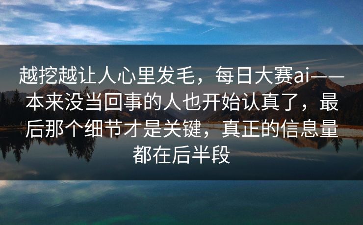 越挖越让人心里发毛,每日大赛ai——本来没当回事的人也开始认真了,最...